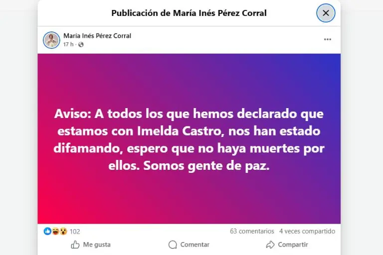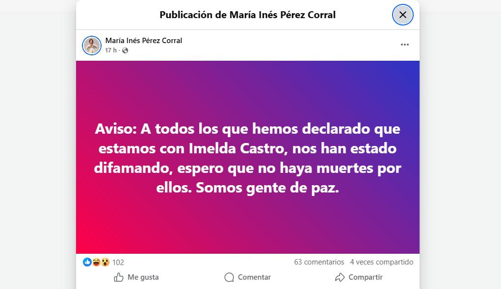 “A todos los que declarado que estamos con Imelda Castro nos han estado difamando”, expresó.