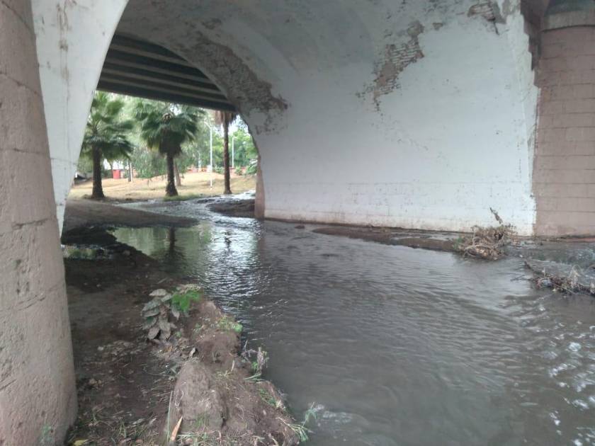 En el parque Las Riberas debajo del puente Hidalgo se encuentra una alcantarilla con un brote de aguas negras que están desembocando en el río Tamazula.