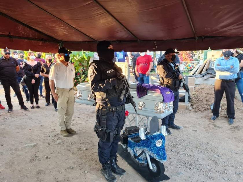 El oficial caído en cumplimiento de su deber fue sepultado en el panteón Jardín Guadalupano en la colonia Barrancos donde residía con su familia.