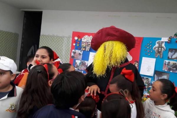 Mientras el Ecoloco les aventaba la basura, los alumnos, maestros, directivos, invitados y padres de familia empezaron a gritarle: "Fuera", "Fuera", "Fuera", logrando que este personaje dañino continuara dañando y ensuciando su espacio.