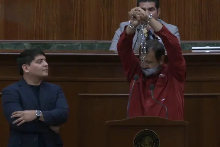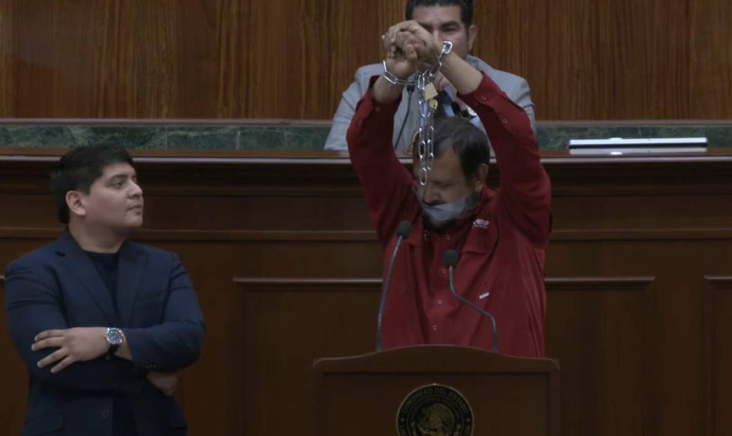 Diputado Serapio Vargas se encadena y amordaza en tribuna del Congreso de Sinaloa