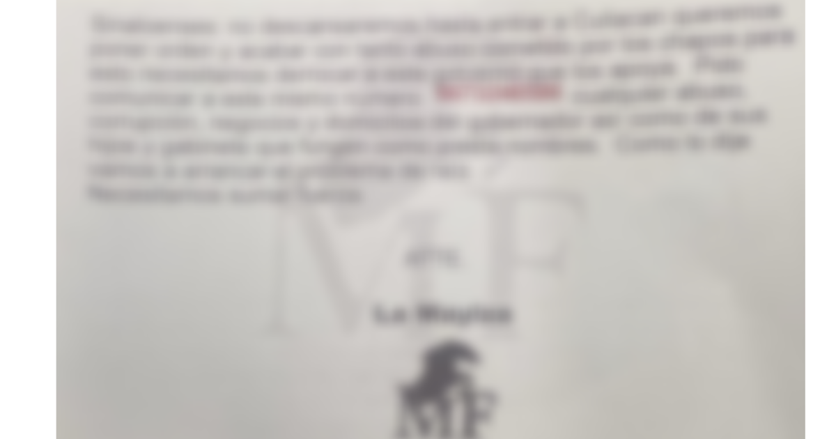 En el mensaje, supuestamente firmado por la facción de crimen organizado “Los Mayos”, se destaca que se buscará desde la misma terminar con la administración estatal actual.
