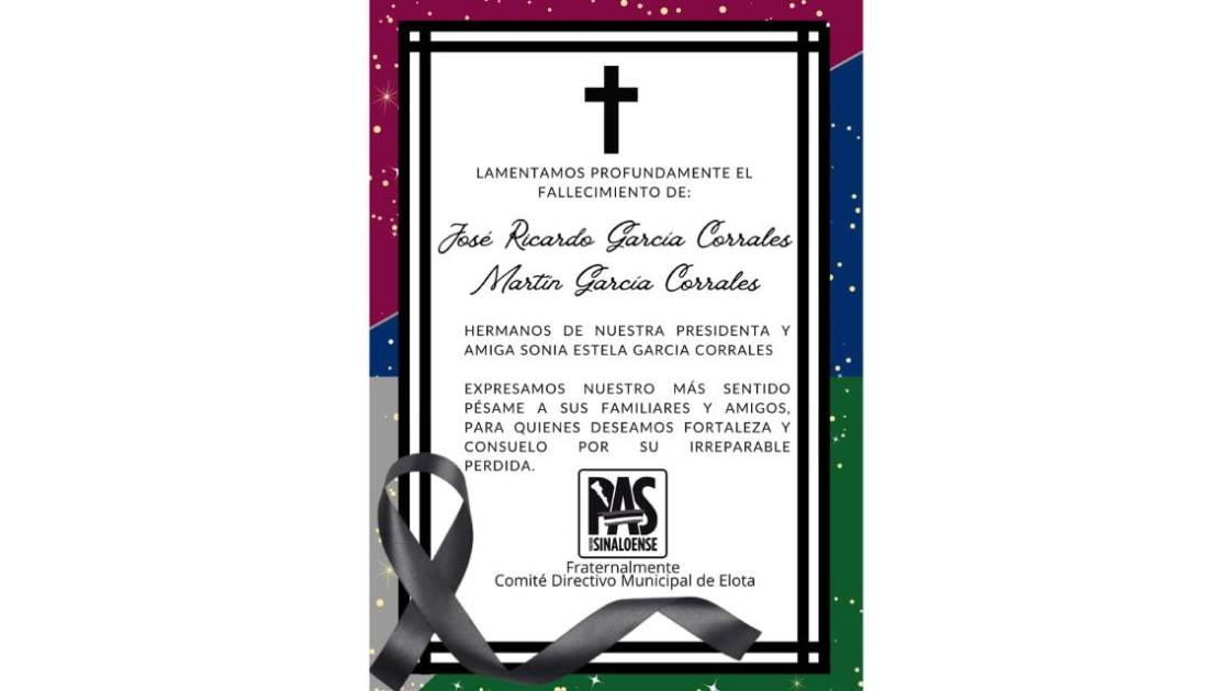 José Ricardo y Martín Garcia Corrales, dos de las tres personas que fueron halladas torturadas y asesinadas en El Espinal, municipio de Elota, resultaron además hermanos de la dirigente del Partido Sinaloense en el municipio de Elota.
