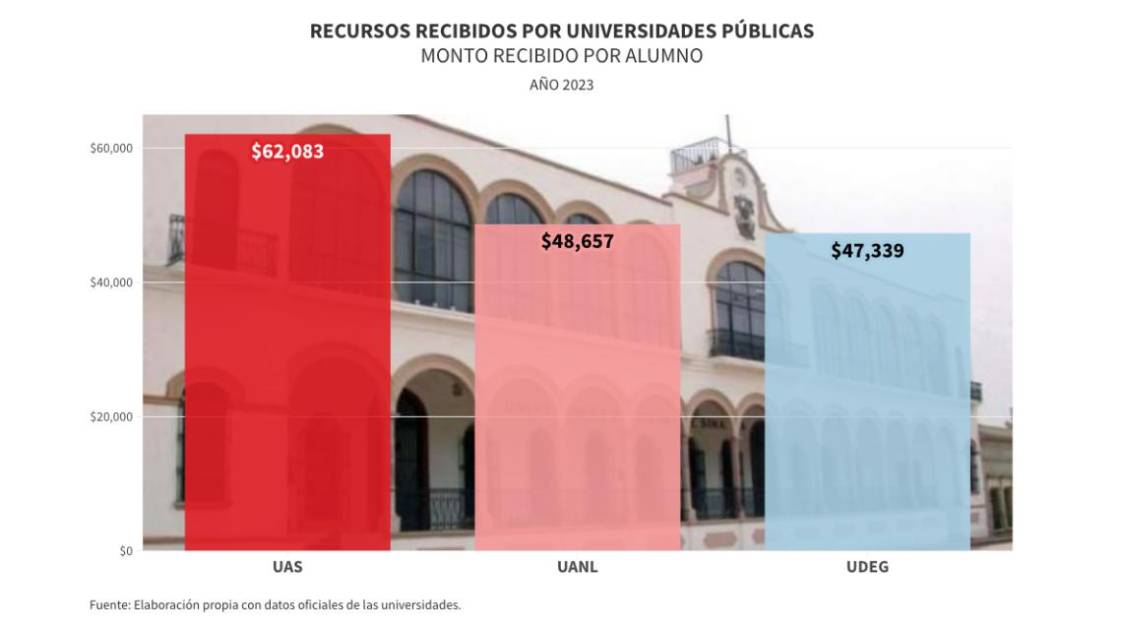 Durante 2023, la UAS recibió 62 mil pesos por alumno; 27% más que la UANL y 31% más que la UdeG