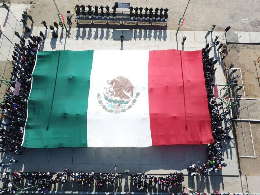 “Se llevó a cabo la Ceremonia de Honores a la Bandera ‘Lunes Cívico’, en el cual se realizó el despliegue de la Bandera Monumental con la participación del personal militar y la Banda de Guerra, entonando las notas del Himno nacional”, dice un informe difundido por la Sedena.