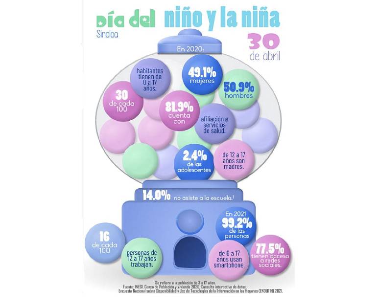 En Sinaloa, el 30 por ciento de la población son menores de 0 a 17 años de edad, de acuerdo al Censo de Población y Vivienda 2020, del Instituto Nacional de Estadística (Inegi).