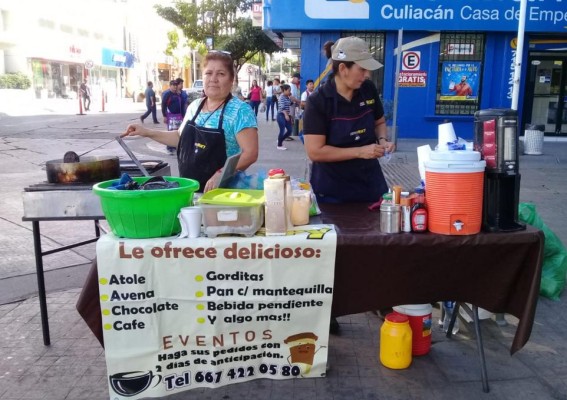 Justo en el corazón de la capital sinaloense se encuentran a la venta este tipo de alimentos como el pan con mantequilla, gorditas de harina con canela y azúcar, atole, café y pan con mermelada y cajeta que vende Atole Mary, una pequeña empresa que emplea aproximadamente a 10 personas.