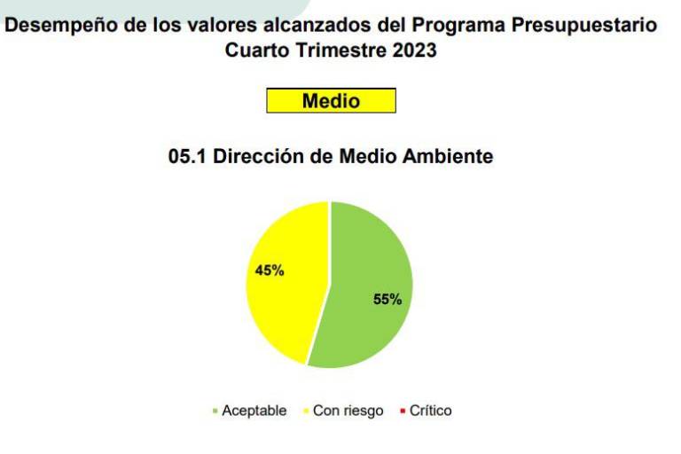 En el cuarto trimestre de 2023, la Dirección de Medio Ambiente del Ayuntamiento de Culiacán decreció un 45 por ciento en su desempeño, esto comparado con el mismo periodo de 2022.