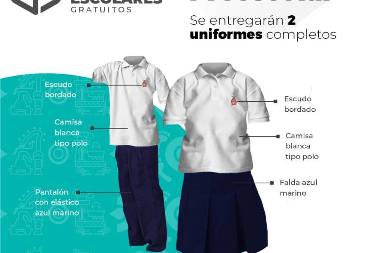 En primaria, el paquete de uniformes gratuitos serán dos juegos completos que constan de camisa de manga corta y pantalón o falda azul marino.