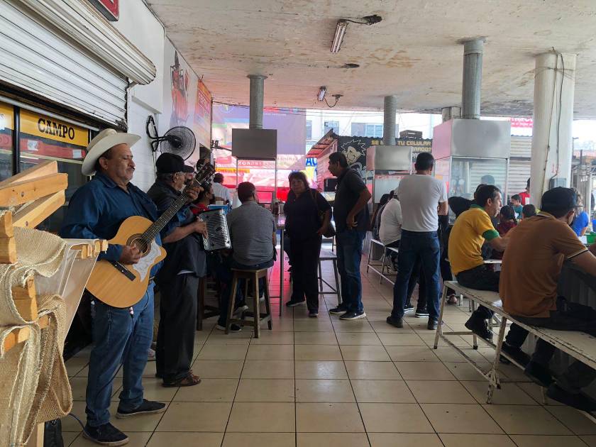 Un trío musical ameniza el lugar con canciones de Los Cadetes de Linares, Ramon Ayala, Chalino Sanchez y una que otra a petición del público.