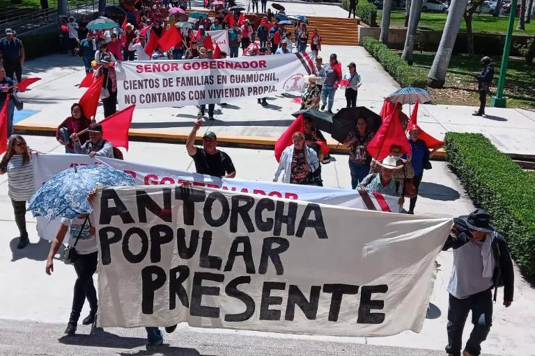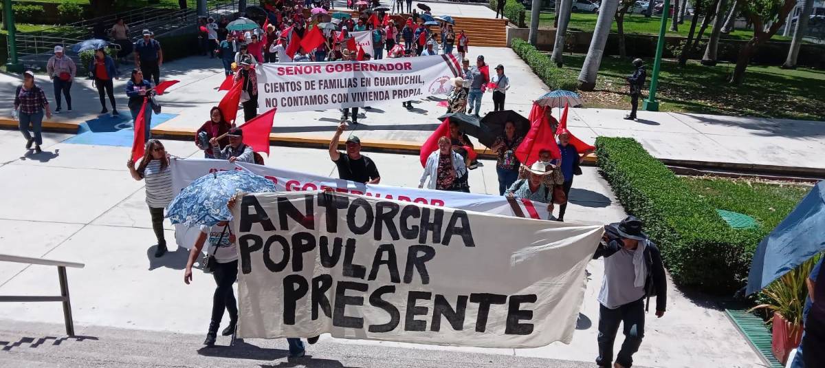 El Movimiento Antorchista Sinaloense marchó desde el Parque Constitución rumbo al Palacio de Gobierno, esto para pedir intervención del mandatario estatal, Rubén Rocha Moya, debido a que no les han solucionado el tema de vivienda.