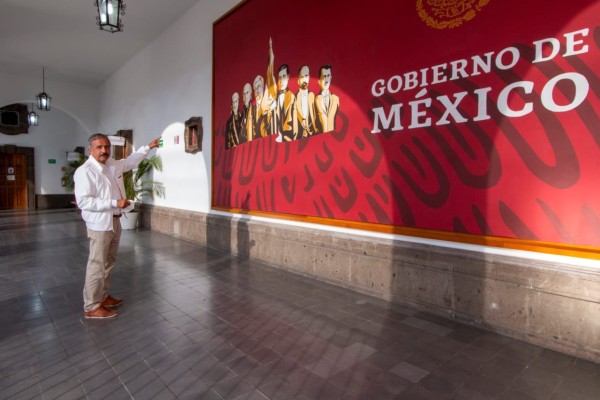 El mural en el que se coloca de manera simbólica al Presidente Andrés Manuel López Obrador al mismo nivel que héroes patrios como Miguel Hidalgo y Costilla y Benito Juárez, y que causó polémica a nivel nacional, se mantiene en el Palacio municipal de Culiacán sin proyectarse su retiro.