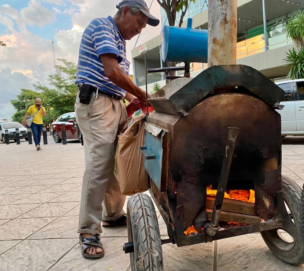 “Se le antoja más a la gente porque es un postre caliente, a veces viene la gente y caliente el sol y caliente el carro, no es tan fácil, pero ya cuando hace frío la gente se arrima con gusto, el aroma a la leña, con el clima fresco se arriman más”, dijo el camotero.