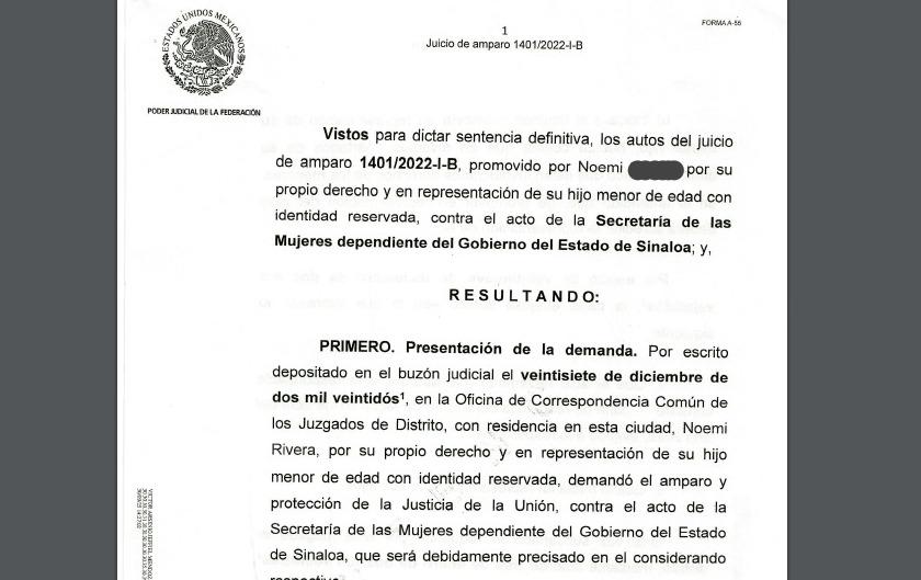 El Juzgado Cuarto de Distrito del Estado de Sinaloa emitió un amparo contra la Secretaría de las Mujeres estatal para proteger a Noemí “R”, trabajadora la Delegación de Programas para el Bienestar Sinaloa quién ha denunciado acoso sexual y laboral por parte de su jefe inmediato.