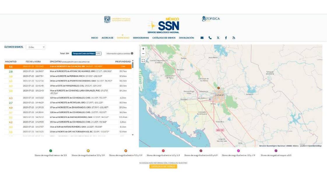La noche del martes 23 de julio, un sismo de magnitud 4.6 con epicentro a seis kilómetros al noroeste de Culiacán sacudió a Sinaloa. Un evento similar ya se había registrado en 2008.