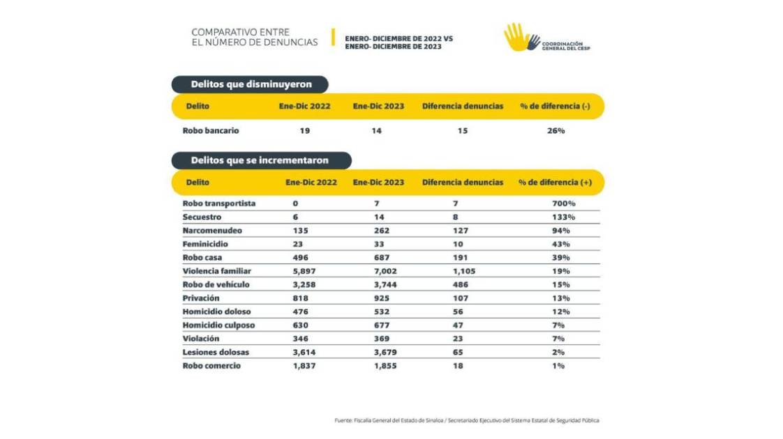 En 2023 aumentó la incidencia en 13 delitos en Sinaloa: CESP