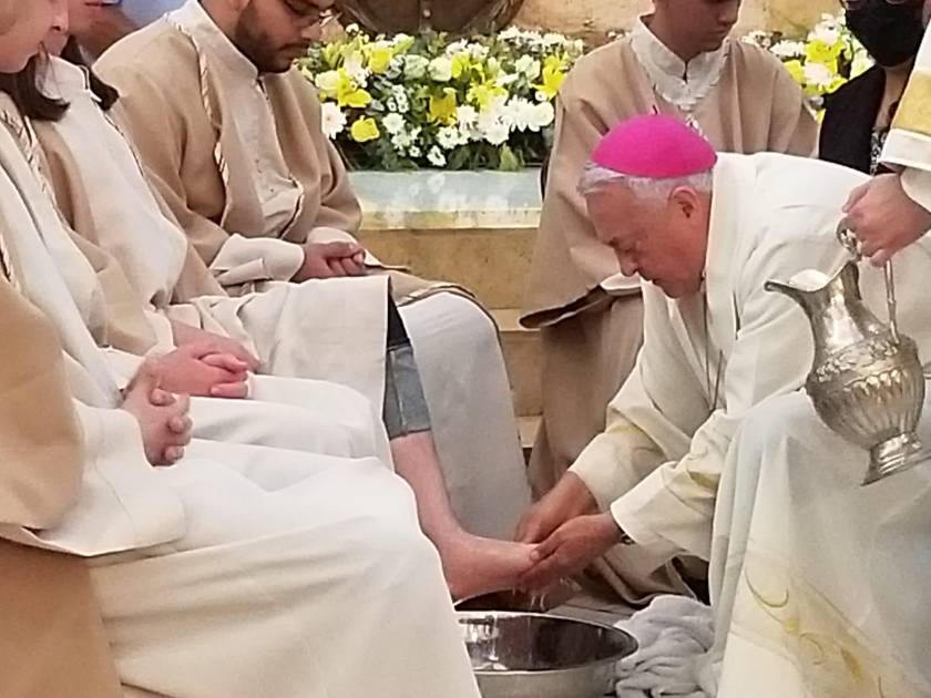 “Este rito del lavado de pies nunca lo vamos a olvidar, porque el católico como Cristo valora al otro, ayuda a aquel, comparte lo que sabe, lo que es, lo que tiene, a otros, el sentido de la vida es dar”, explicó el Obispo Jonás Guerrero.