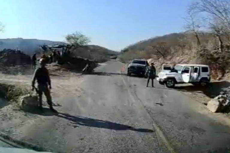 El “comando” estaba ubicado a la altura de Bacaboragua, Badiraguato, tenían alambre ponchallantas sobre el asfalto y camionetas en los laterales a modo de convertir la vía en un cuello de botella.
