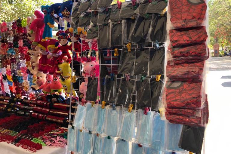 “Antes la gente compraba por cajas (de cubrebocas), ahora compran de uno solo, antes los daban a 10 pesos y para que no se me vayan a quedar ahora los vendo a tres por 20 pesos”, afirmó María, comerciante del primer cuadro de la ciudad.