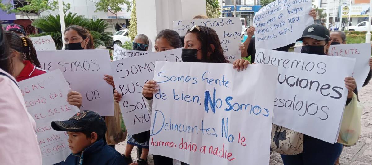 Durante este jueves, familiares se manifestaron en el Ayuntamiento de Culiacán para solicitar al alcalde Juan de Dios Gámez Mendívil regularizar los predios para que les sean vendidos.