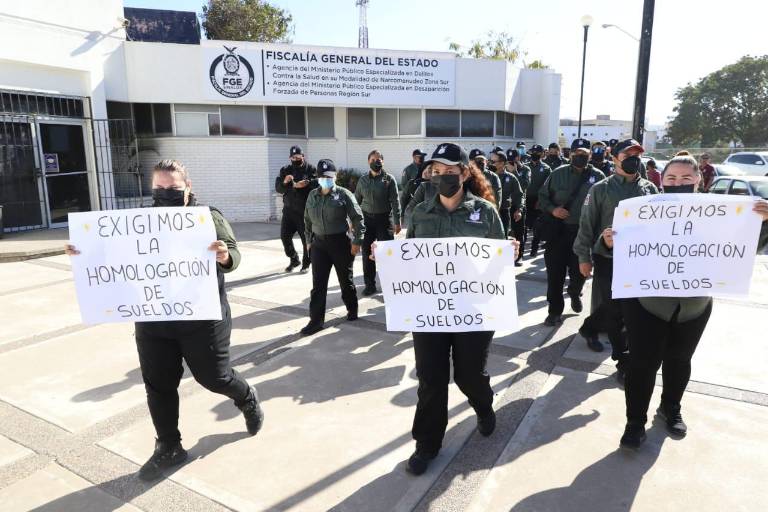 Cabe señalar que este lunes en Mazatlán, también se manifestaron elementos de la Policía de Investigación en la Vicefiscalía de la zona sur, de igual forma, exigiendo homologación de salarios y mejores instalaciones.
