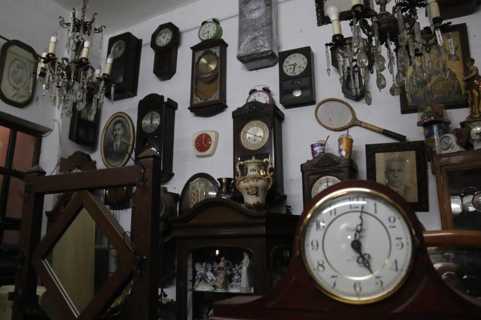 Después de casi 20 años de adquirir y vender piezas es complicado apegarse a inventarios rigurosos, pero entre la colección destacan cómics de Superman, libros de literatura inglesa y estadounidense, juegos de té, monedas de todo el mundo y un sinfín de relojes y artefactos de fotografía.