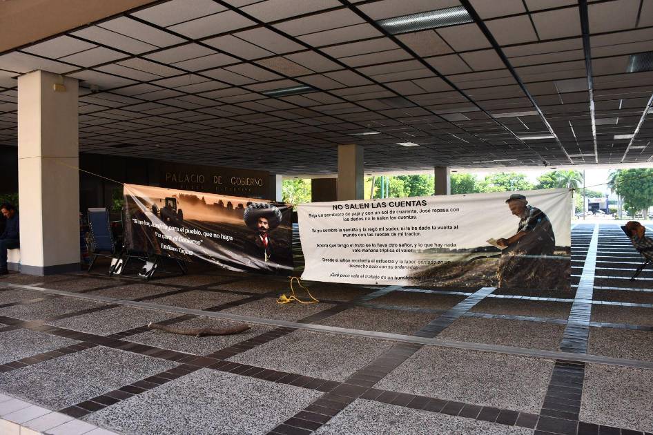 Un grupo de productores y productoras agrícolas cumple ya 48 horas acampando en el patio del Palacio de Gobierno en Culiacán, Sinaloa, como parte de una manifestación que busca visibilizar la falta de atención al campo por parte de las autoridades federales y estatales.