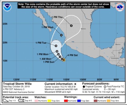 Pronosticó que la madrugada de hoy “Willa” podría intensificarse a huracán de categoría 1, y a las 13:00 horas aumentar a categoría 2.