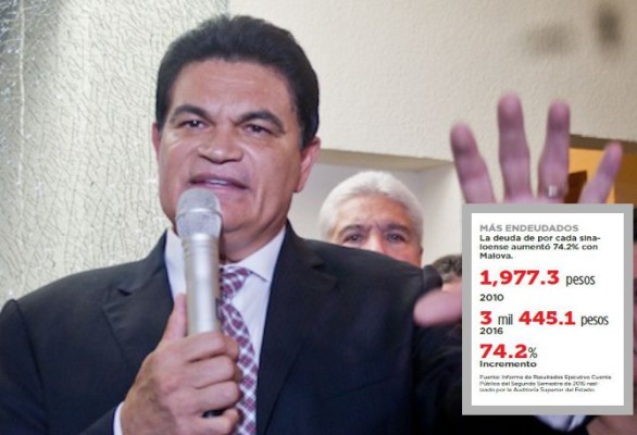 "Endeudó Malova 74.2% más a cada sinaloense"