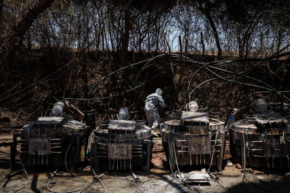 La vegetación se cierra y el olor químico empieza a mezclarse con el polvo y el sudor. Ahí, entre el silencio y la maleza, se almacenan las sustancias para cocinar la droga.