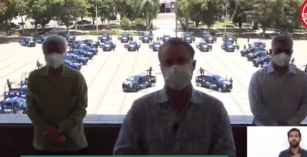 La breve ceremonia fue transmitida por video en vivo a través de las cuentas de redes sociales del mandatario, en donde se pudieron observar las patrullas acomodadas en la explanada del Palacio de Gobierno.