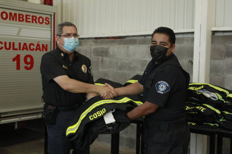 “Afortunadamente hemos tenido algunas contrataciones y ahora estos ya algunos son Bomberos de paga, los cuales, gracias, tanto a los voluntarios como al personal (de base) por seguir en la institución, son 25 equipos que se entregan a personal voluntario que ha cumplido sus guardias, que ha estado siempre en la mejor disposición y se ha mantenido siempre en capacitación permanente para darle a los culiacanenses un mejor servicio”, dijo Chú.
