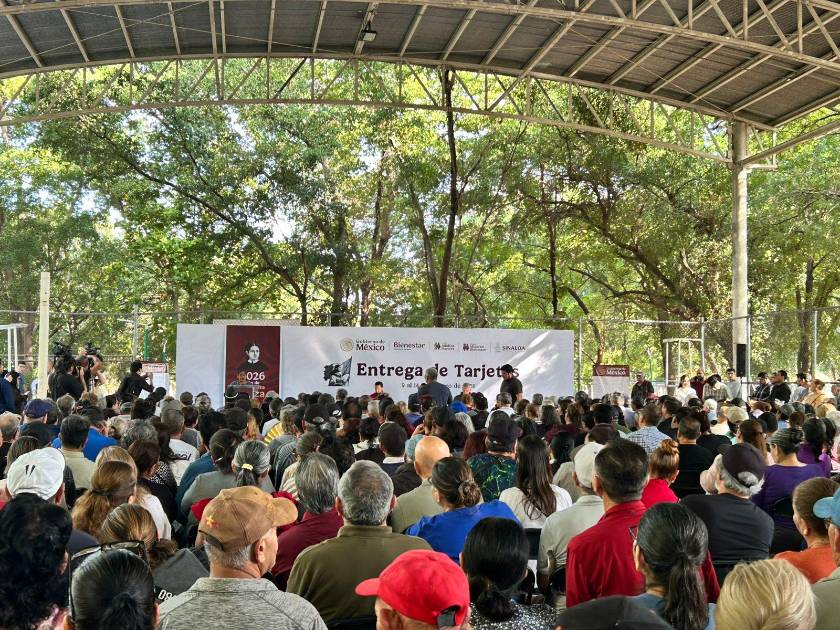 Un total de mil tarjetas de la pensión para Adultos Mayores y del programa pensión Mujeres Bienestar fueron entregadas este martes en el Parque Constitución, en Culiacán.