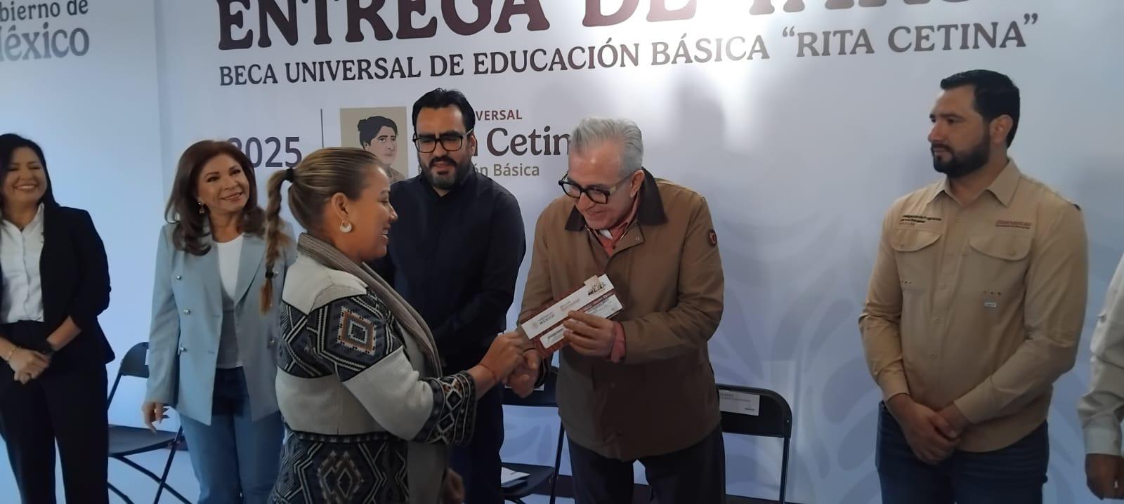 “Hoy nuestro gobernador nos acompaña para hacer de manera presencial la entrega de la tarjeta que va a ser de gran beneficio. Al gobernador y a la Secretaría de Educación Pública, con el impulso de nuestra presidenta, la doctora Claudia Shienbaum, nos importa mucho que sus hijas, sus hijos, no interrumpan sus trayectorias educativas, que permanezcan en los planteles recibiendo la educación conforme a la nueva escuela mexicana”, dijo.