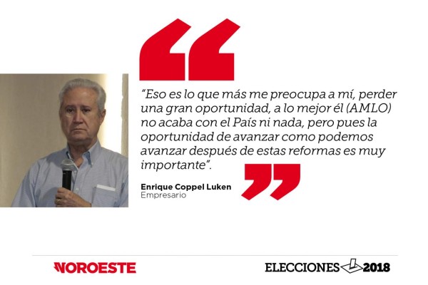 Yo digo que la oportunidad que tenemos ahorita de mejorar mucho, eso es lo que más me preocupa a mí, perder una gran oportunidad, a lo mejor él no acaba con el País ni nada, pero pues la oportunidad de avanzar como podemos avanzar después de estas reformas es muy importante.