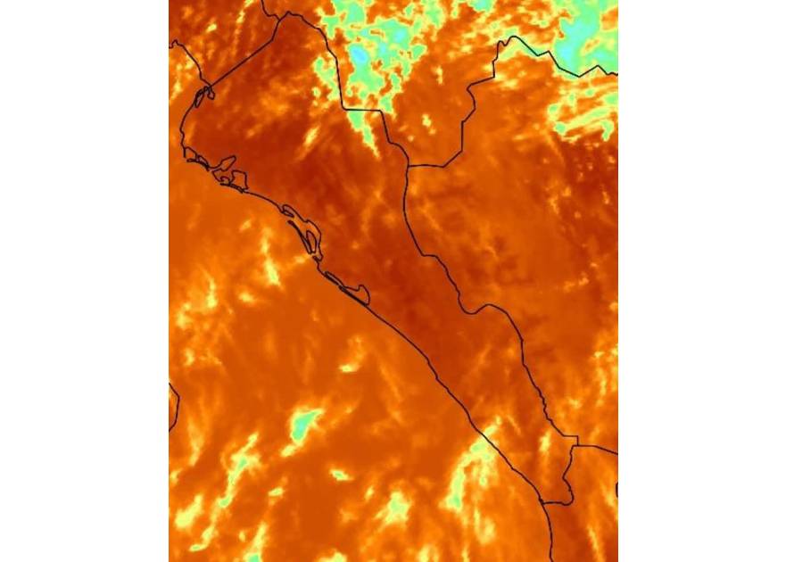 “Sensación térmica de hasta 41 grados en algunas zonas del Culiacán a las 2 p.m., se muestra la imagen de infrarrojo de esa hora”, publicó en sus redes sociales.