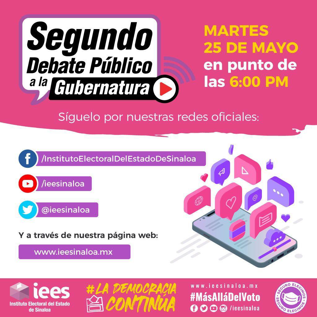 Mañana es el segundo debate entre los candidatos a la Gubernatura, mismo que organiza el Instituto Electoral del Estado de Sinaloa.