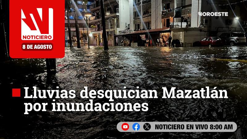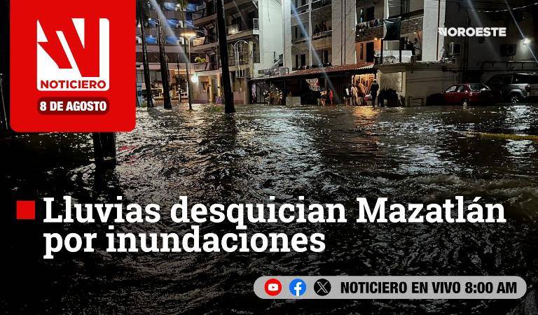 Este viernes, en Noticiero Noroeste: Lluvias desquician Mazatlán por inundaciones