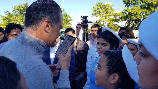 Los estudiantes aprovecharon su visita al Centro de Ciencias de Sinaloa para acercarse al mandatario estatal y abordarlo sobre el tema.