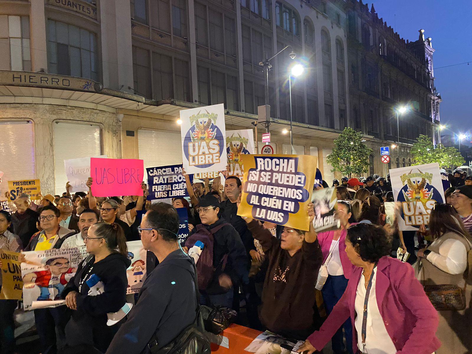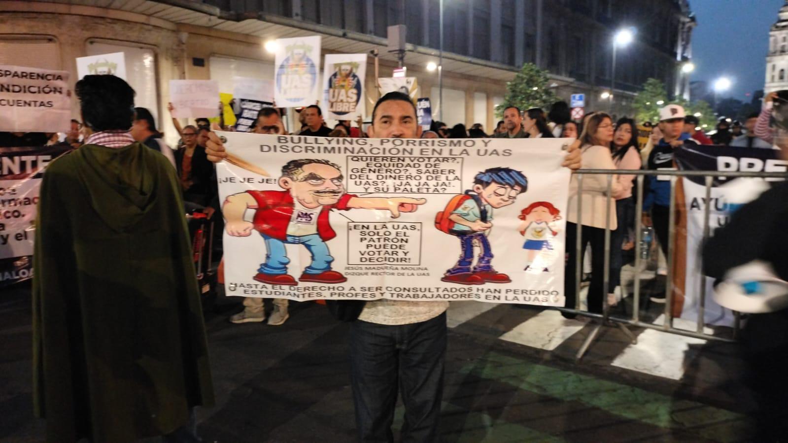Estudiantes y docentes de la UAS se manifiestan en el Zócalo de CDMX