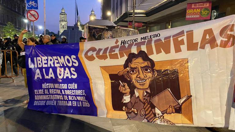 En el Zócalo también hay una movilización de quienes se han posicionado a favor de los procesos penales contra autoridades universitarias, el grupo Civitas.