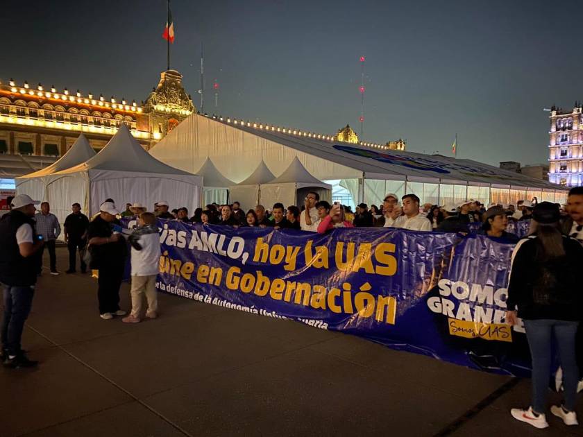 Docentes y estudiantes de la Universidad Autónoma de Sinaloa ya se encuentran en el Zócalo de la Ciudad de México para manifestarse contra una serie de hechos que han calificado como persecución política.