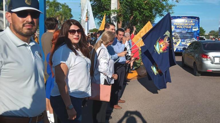 La movilización es encabezada por el encargado de despacho de Rectoría Robespierre Lizárraga Otero, quien se encuentra en la Ciudad de México para atender una reunión con el Gobernador Rubén Rocha Moya y la titular de la Secretaría de Gobernación Luisa María Alcalde Luján.