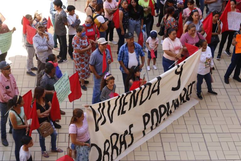 En una manifestación en el patio central del Palacio de Gobierno, integrantes del Movimiento Antorcha Campesina exigieron al Gobierno de Sinaloa viviendas gratuitas para mil 500 familias que carecen de un espacio para vivir.