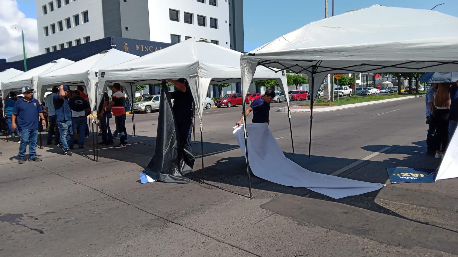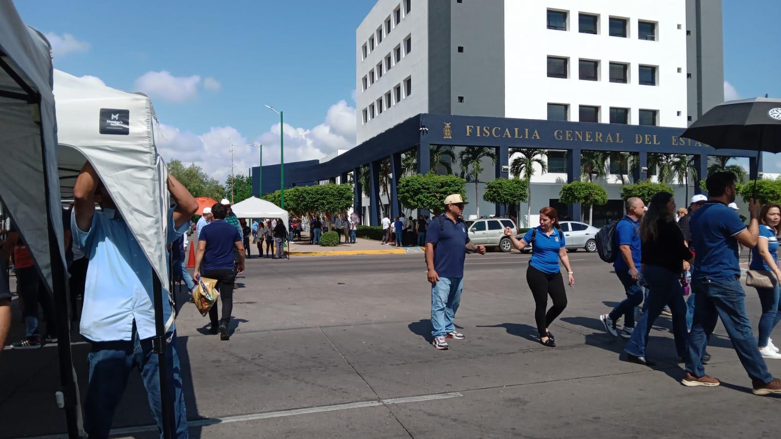 CULIACÁN._ Personal del Sindicato Único de Trabajadores de la Universidad Autónoma de Sinaloa protestaron este lunes frente a la Fiscalía General del Estado, para exigir que no le impongan prisión preventiva como medida cautelar al Rector Jesús Madueña Molina.