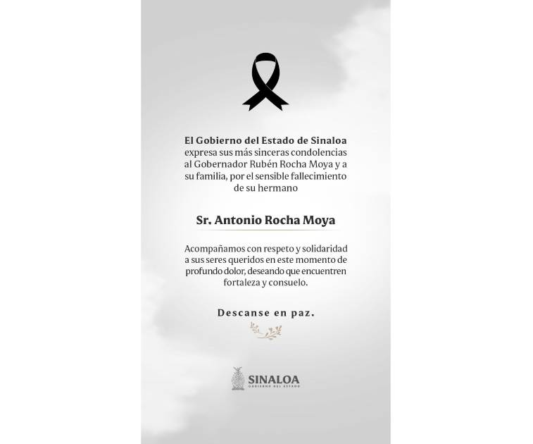Dependencias del Gobierno de Sinaloa emitieron esquelas para expresar sus más profundas condolencias al mandatario estatal y a su familia.