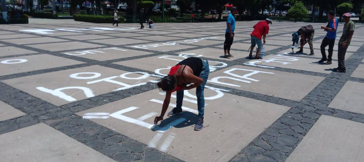 Familias pintan plaza cívica de Palacio para exigir justicia por ataque de supuestos marinos