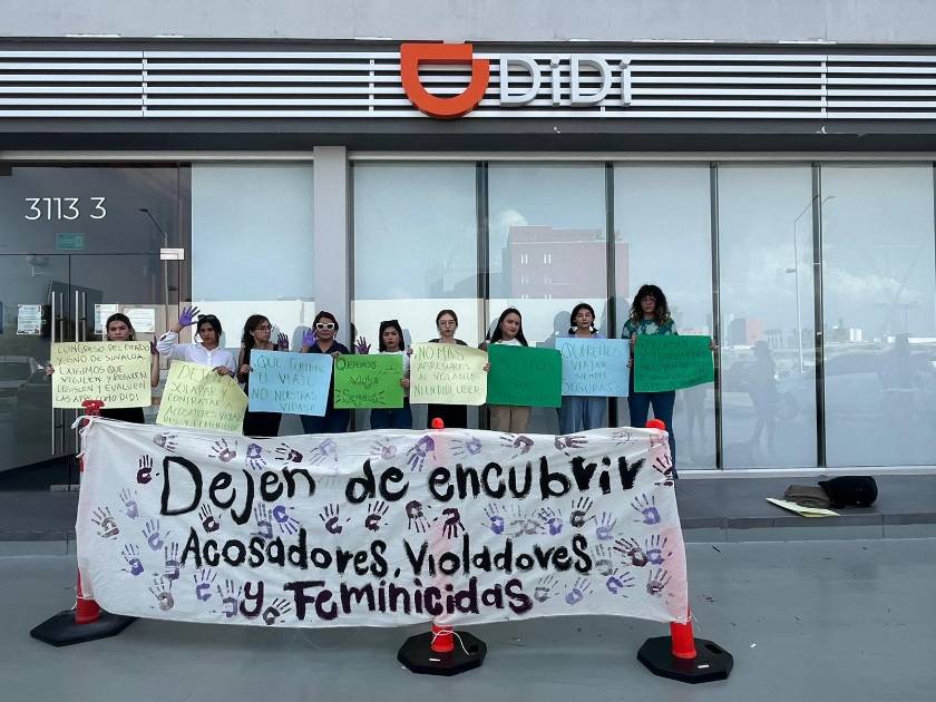 La colectiva feminista Amapas del Norte y Pitaya Árida se manifestaron en las instalaciones de Didi, en Culiacán, para exigir medidas de seguridad que garanticen el bienestar de mujeres usuarias.