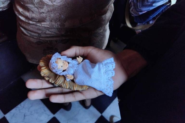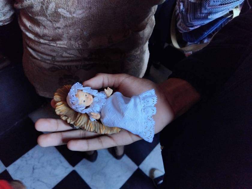 Durante la procesión, un adolescente cuidaba entre su mano derecha a un Niño Dios de al menos 5 centímetros, el cual fue bendecido por el sacerdote minutos antes de entrar a la Catedral.