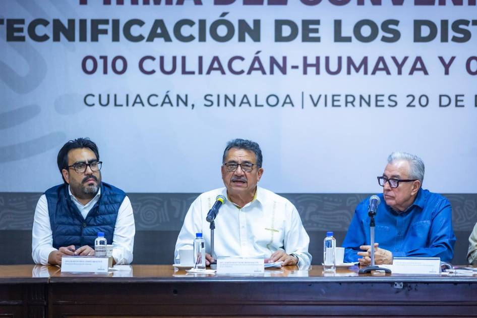 CULIACÁN._ Con una inversión a ejercer de 13 mil millones de pesos, el Gobernador Rubén Rocha Moya y el Subdirector de Infraestructura Hidráulica de la Conagua, Aarón Mastache Mondragón, firmaron el convenio para la tecnificación de los distritos de riego 010 Culiacán-Humaya y 075 El Fuerte, cuyos trabajos habrán de iniciar a partir del próximo año.